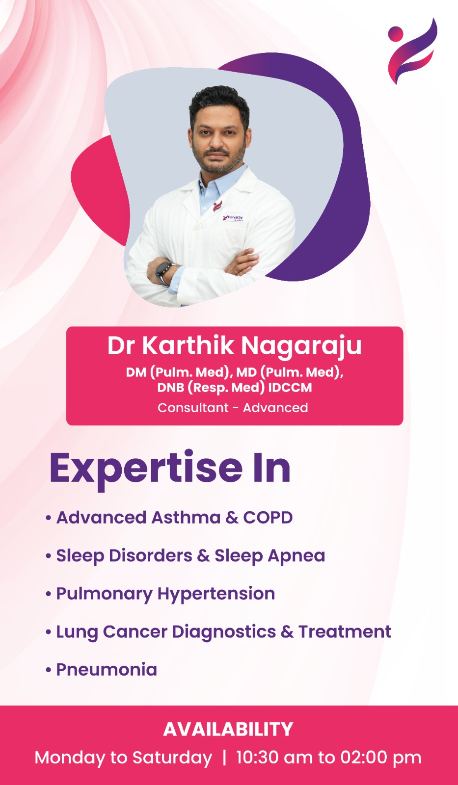 If you're looking for the best pulmonologist in Chennai? Visit Parvathy Hospital at Chromepet and get Expert care for asthma, lung conditions, and respiratory health by top lung specialists in Chennai. Book your appointment today if you have any of the common symptoms listed below that last for more than a few days.